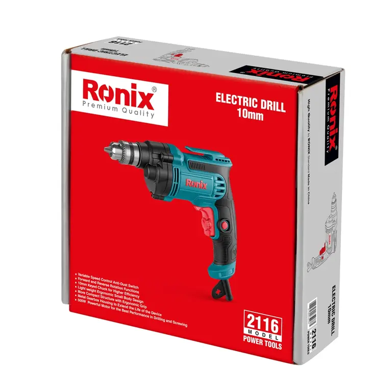 دریل نیم تنه فلزی 10 میلیمتری 500 وات رونیکس مدل 2116