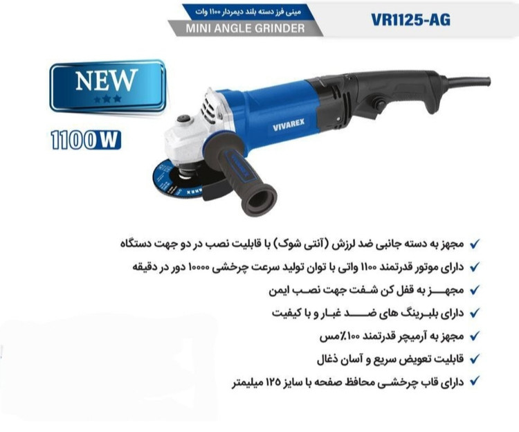 مینی فرز دسته بلند دیمردار 1100 وات ویوارکس مدل VR1125-AG